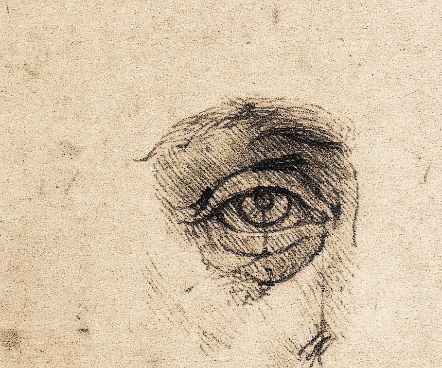 Sculpture of an eye inspired by drawing of Léonard Davinci